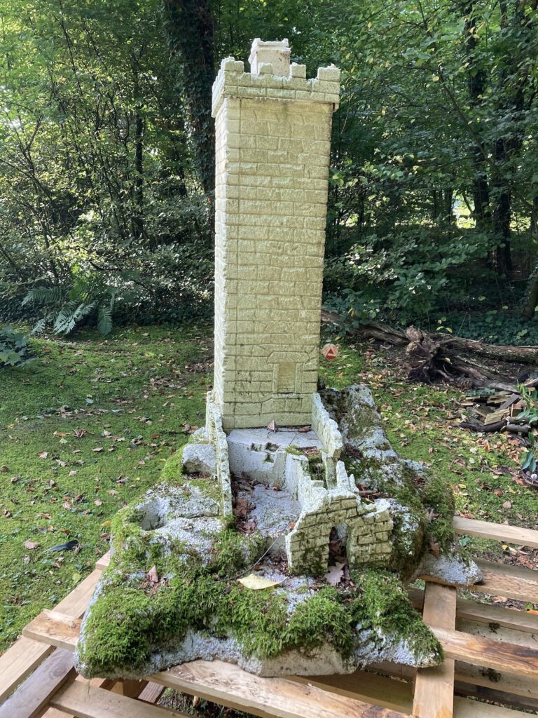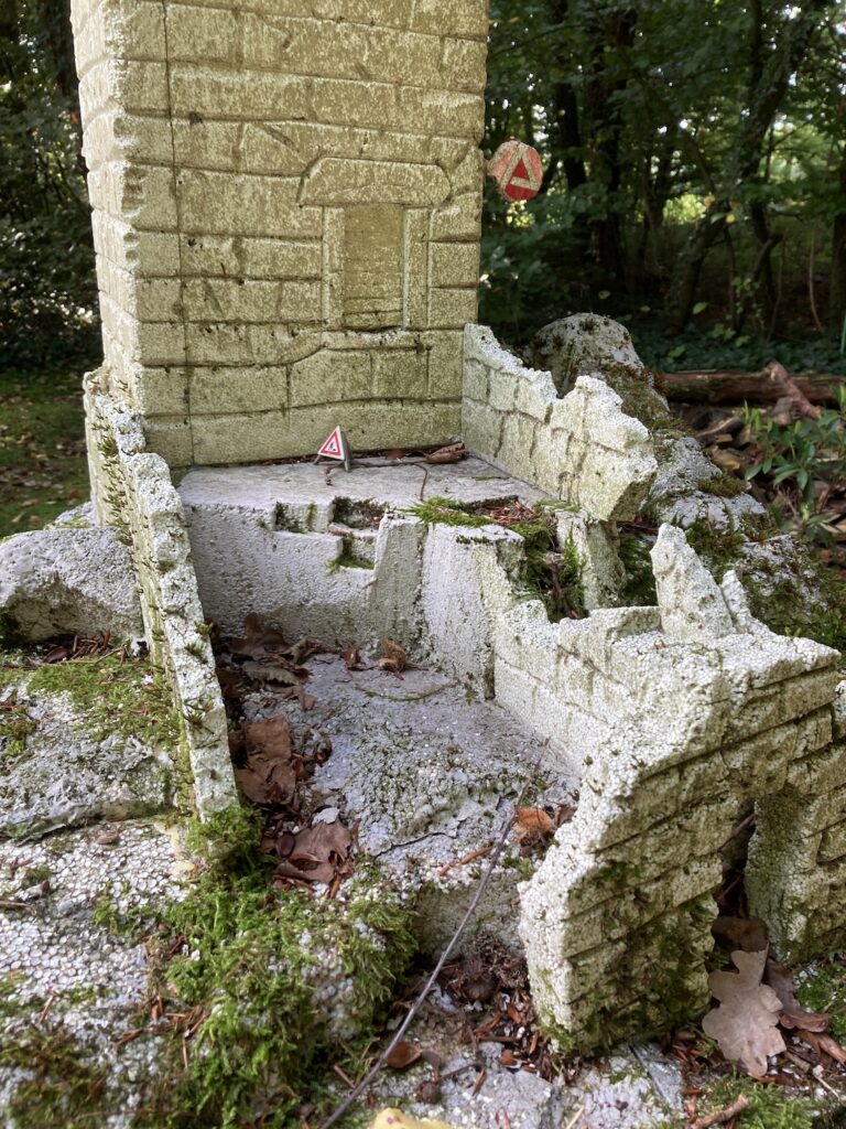 das Amt entstand um 2004 mit Einführung der ALG II Gesetzgebung in Dresden, zunächst im Atelier und für den Innenraum gedacht, aus Polystyrolschaum. Ab 2016 habe ich es der Verwitterung im Garten ausgesetzt. Langsam holen Pflanzen und Kleintiere sich diesen Raum zurück und besetzen, erobern und verändern ihn nach und nach.